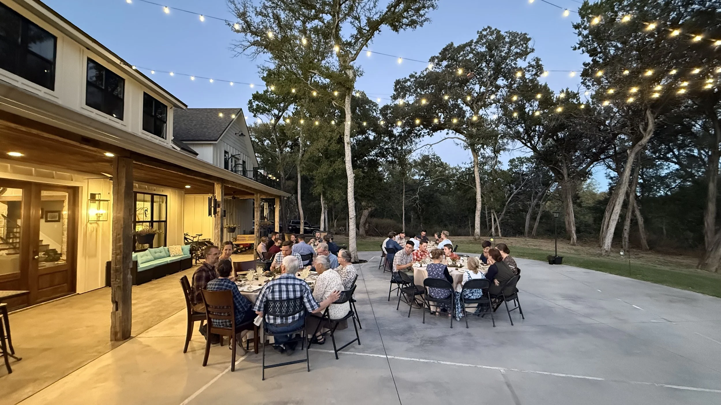 Outside dinner with family and friends
